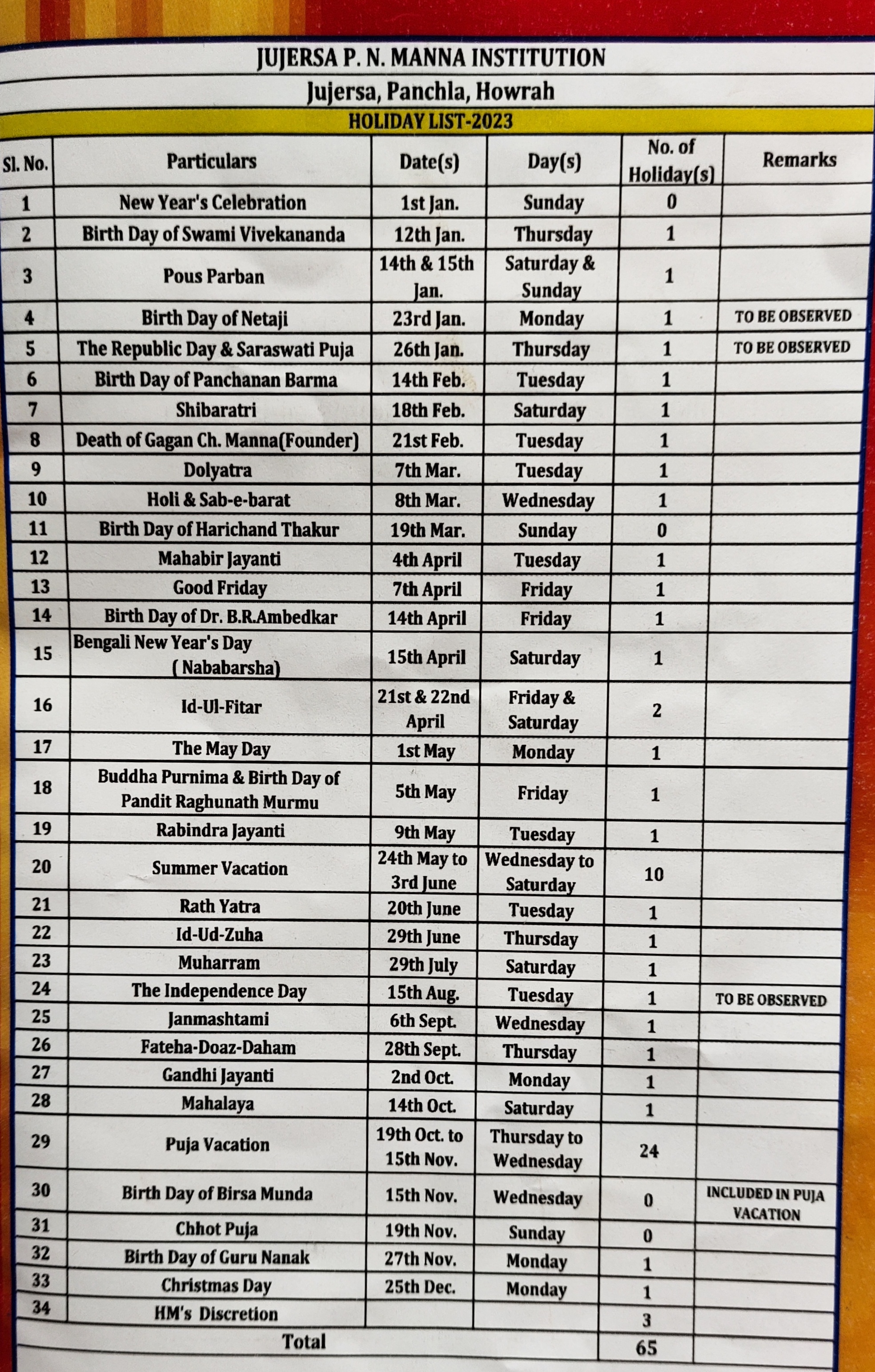 Home / Academics / List of Holidays 2023
